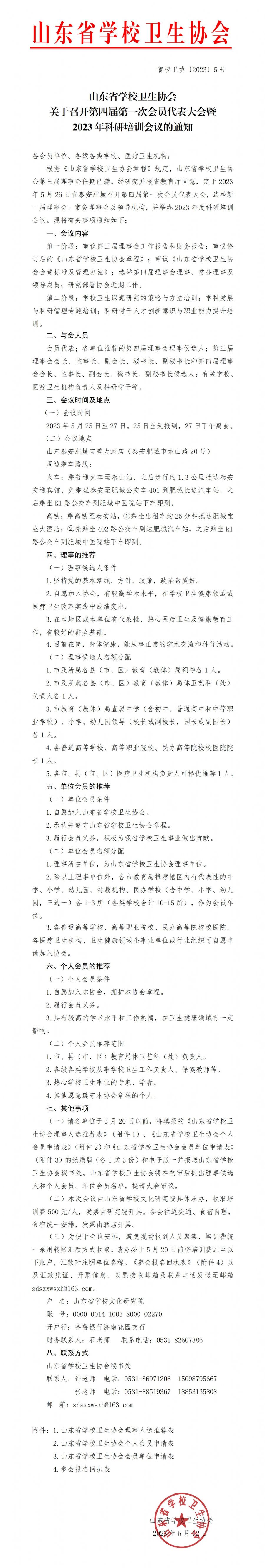 山东省学校卫生协会关于召开第四届第一次会员代表大会暨2023年科研培训会议的通知