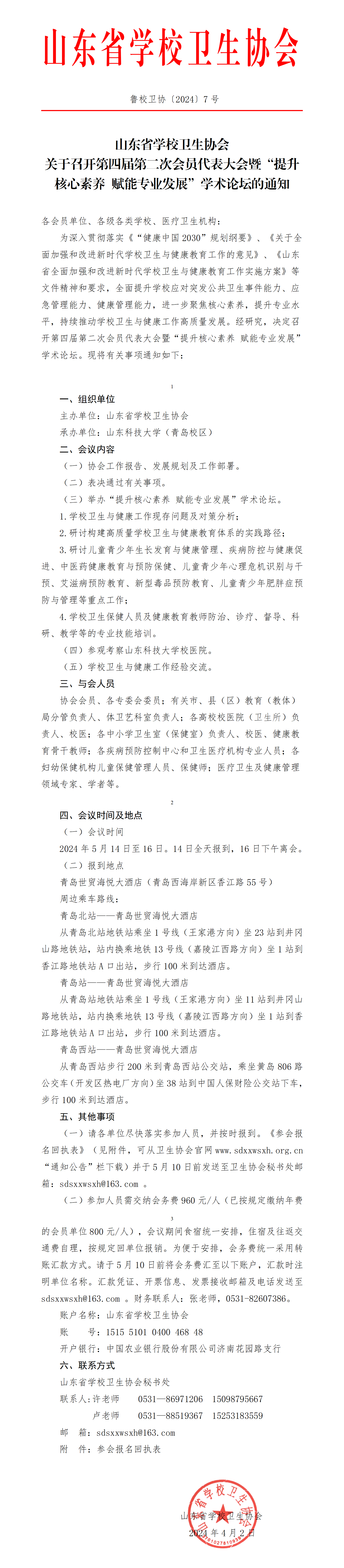 山东省学校卫生协会关于召开第四届第二次会员代表大会暨“提升核心素养 赋能专业发展”学术论坛的通知
